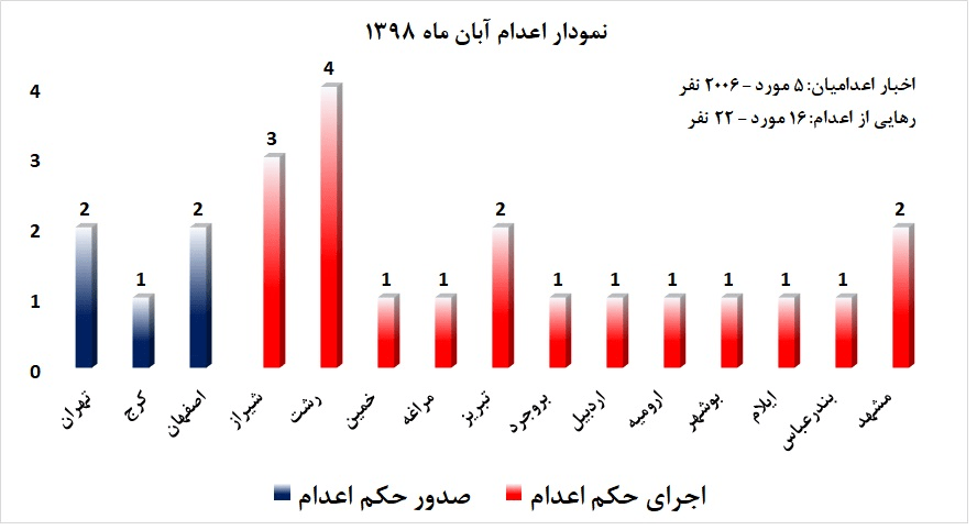 با توجه به سانسور خبری حاکم بر رسانه های ایران، آنچه در پی میآید گزارشی است کوتاه و فشرده ازنقض حقوق جامعه ایران در محدوده اعدام شهروندان، طی دوره زمانی یک ماه گذشته، که نمیتواند بازتابدهنده کامل این قتل دولتی باشد.